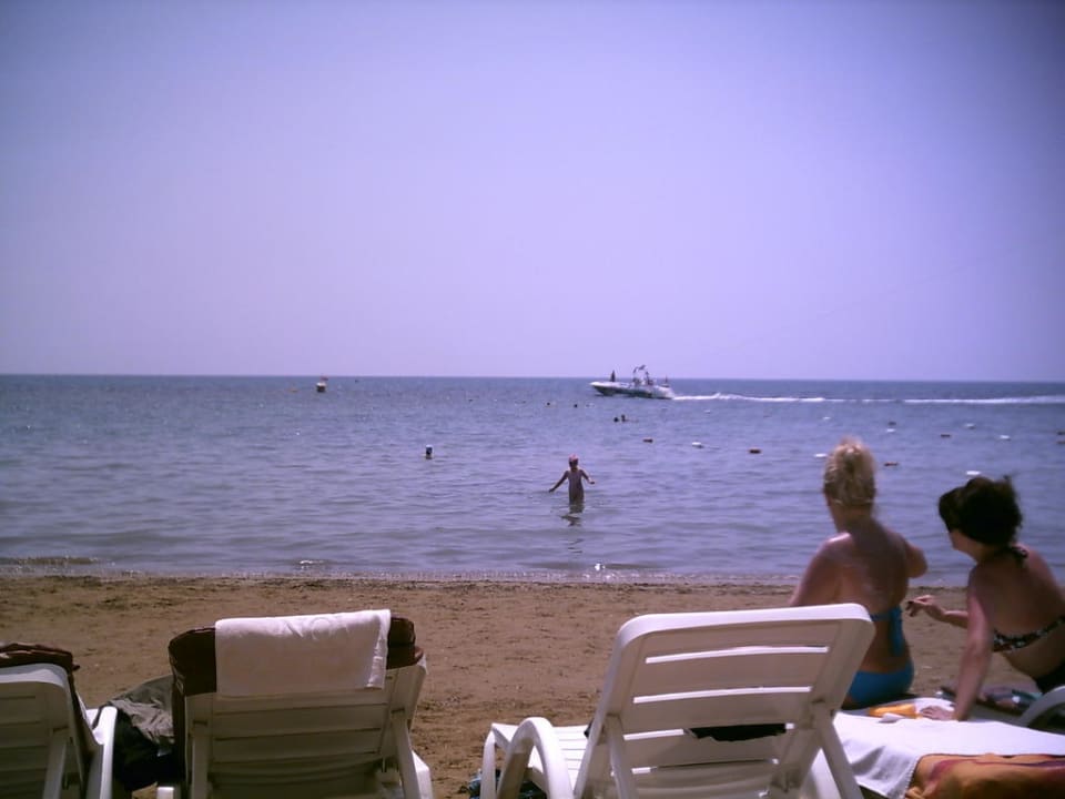 Blick auf den Strand des Hotel von den Liegen aus
