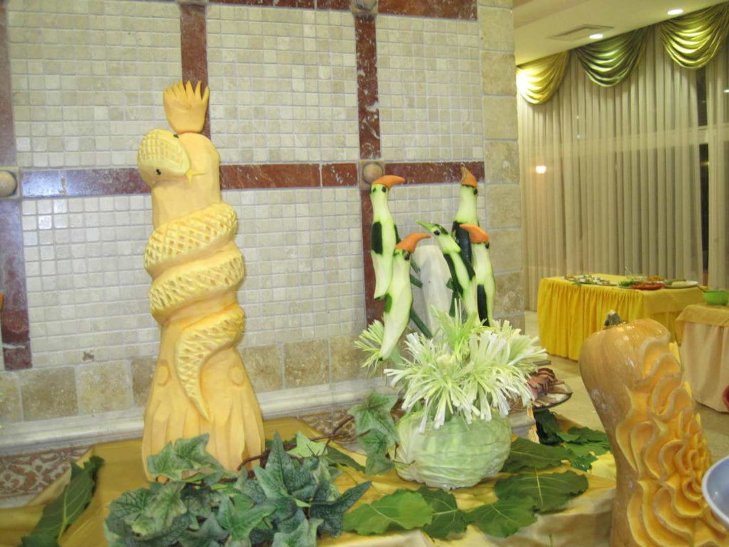 Geschnitzte Figuren am Galaabend.