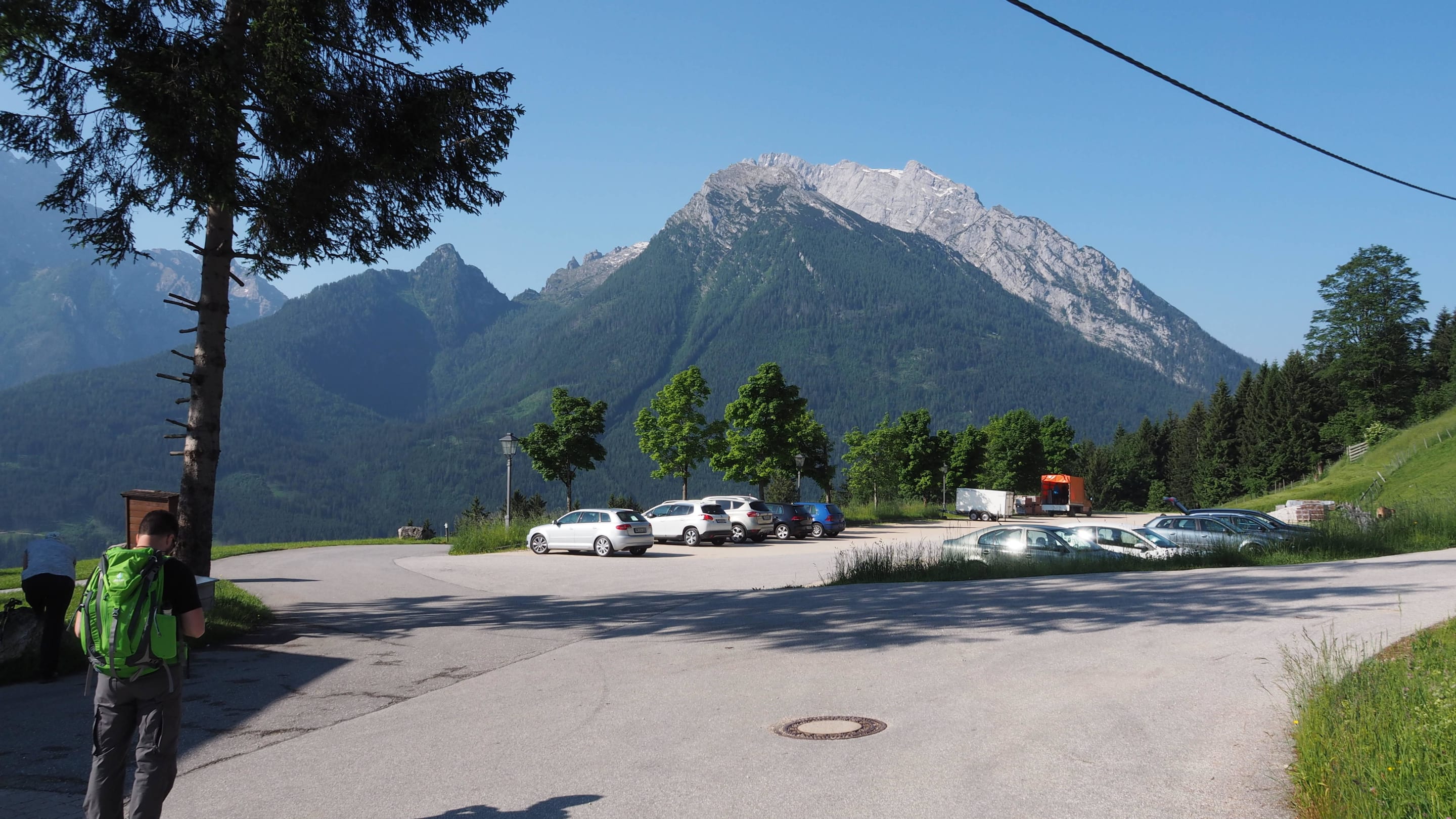 Blick vom Haus zum Parkplatz