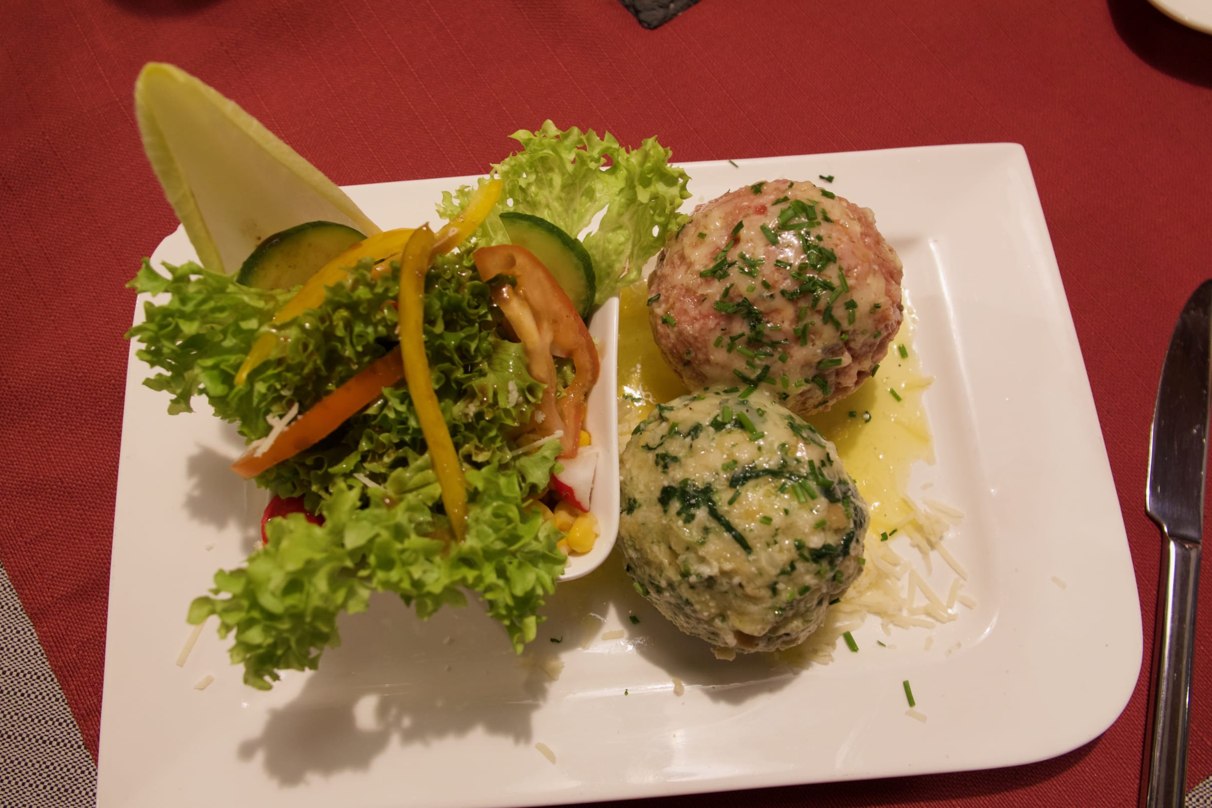 Köstliches Knödel-Duo mit Salat