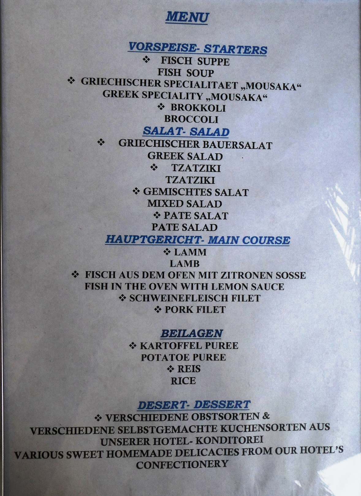Abend Menu