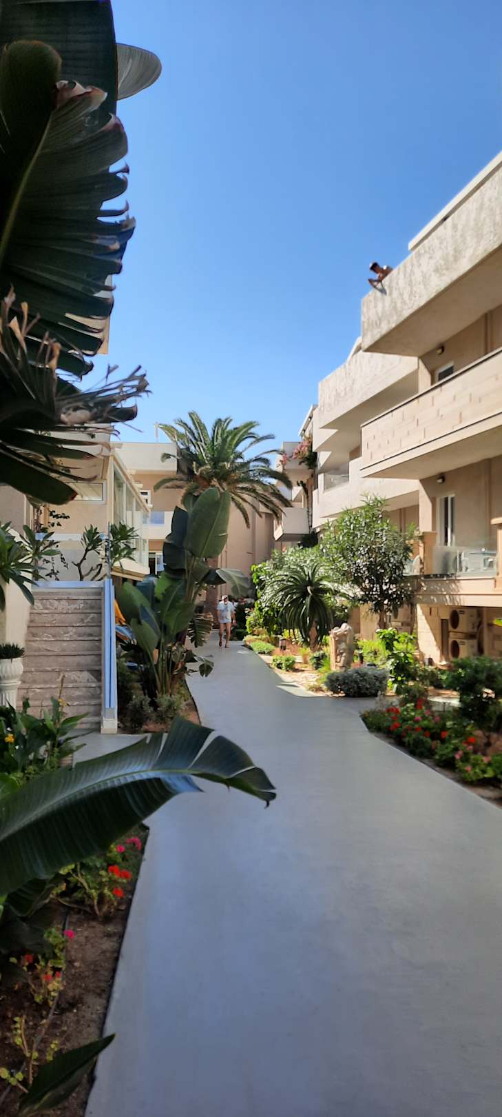 Weg zwischen den Hotelgebäuden vom Strand zur Rezeption