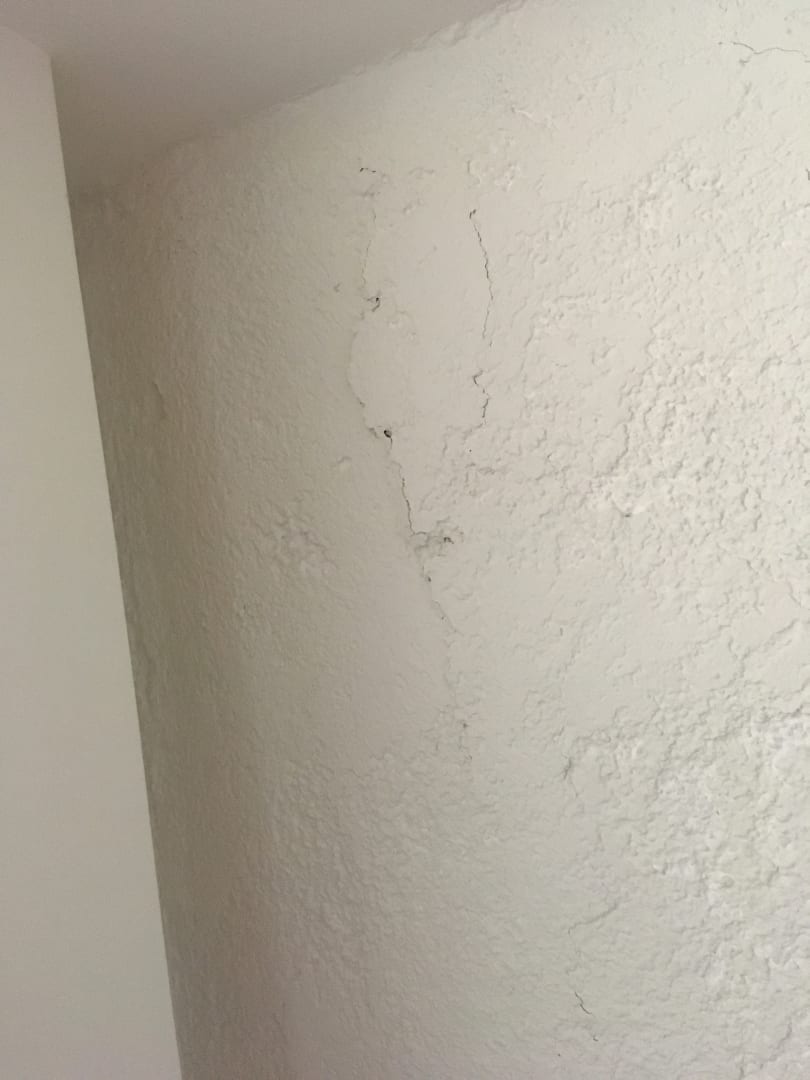 ZimmerDer Putz von der Decke löst sich aber er bleibt noch an der Decke und fällt nicht auf die Person das ist gut
