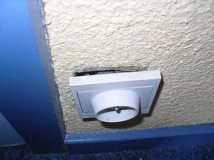 An der Wand im Zimmer eine kaputte Steckdose.