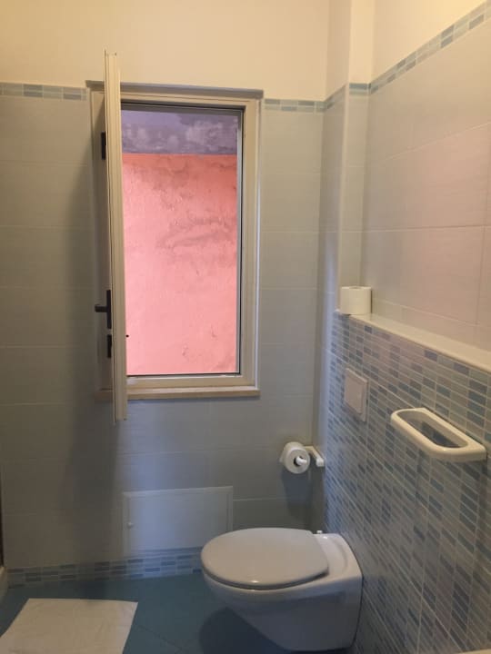 Blick aus dem Bad auf eine Wand