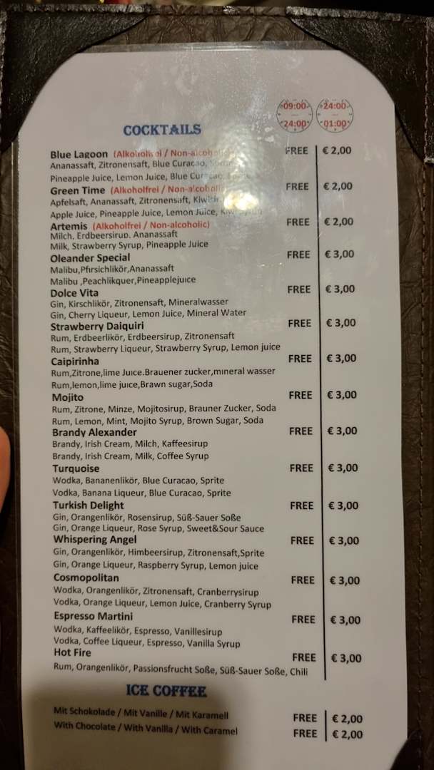Cocktails all inklusive! Meine Empfehlung: Brandy Alexander oder Oleander Special