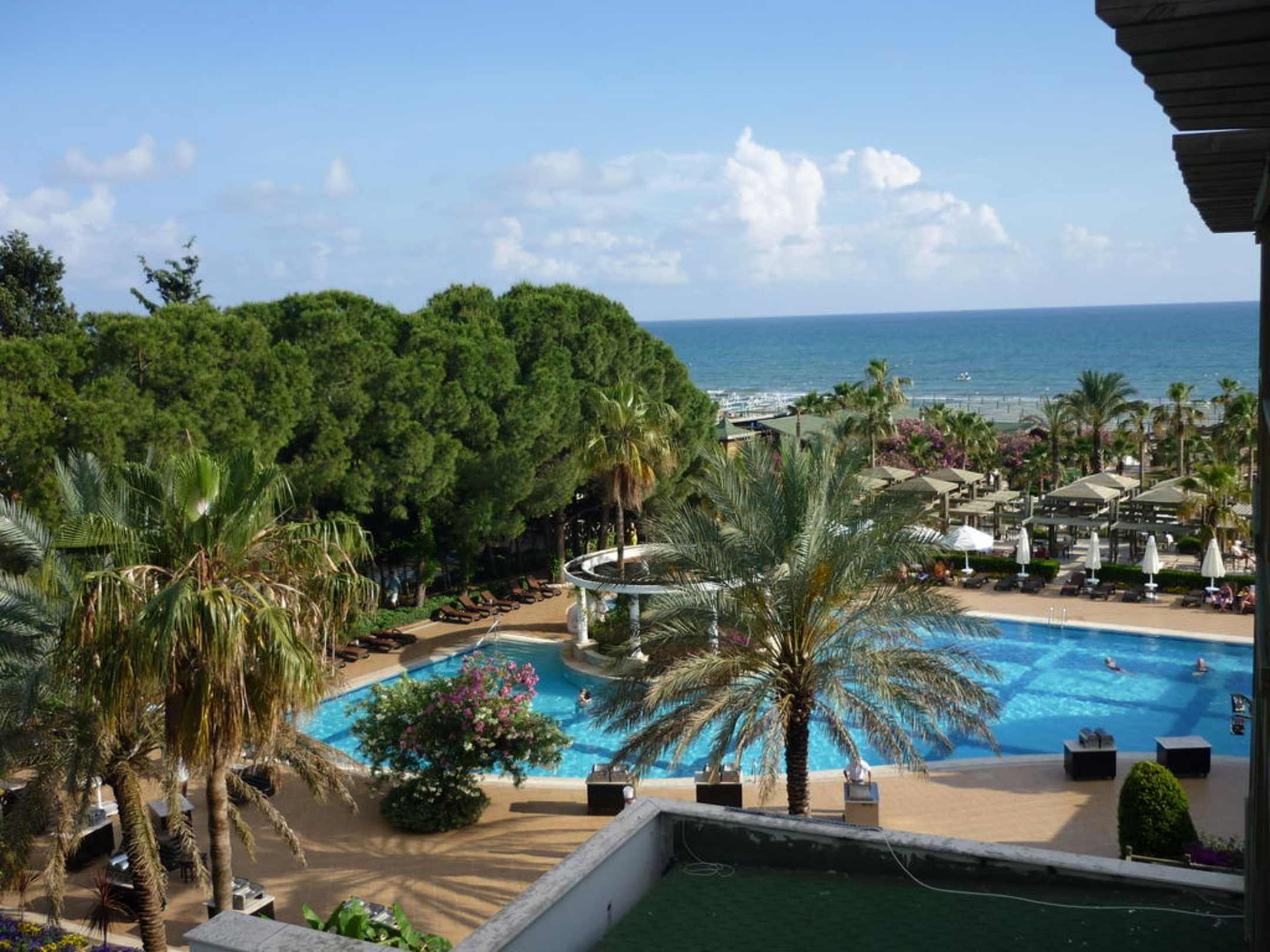 Blick vom Zimmer auf den Pool