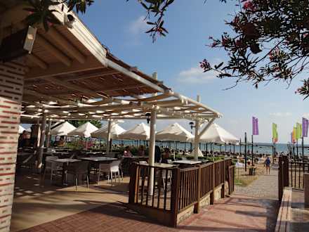 Strandbar links, der Weg zum Strand