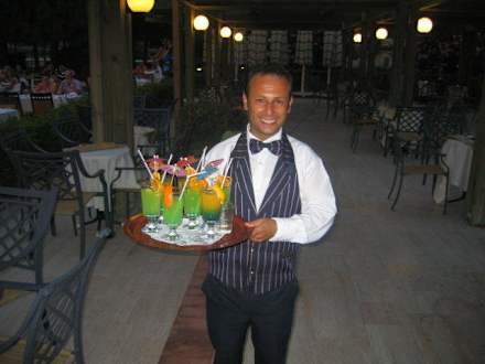 Cayhun, ein Top-Kellner, immer zu einem Spaß bereit. Die gute Seele der Strand-Bar