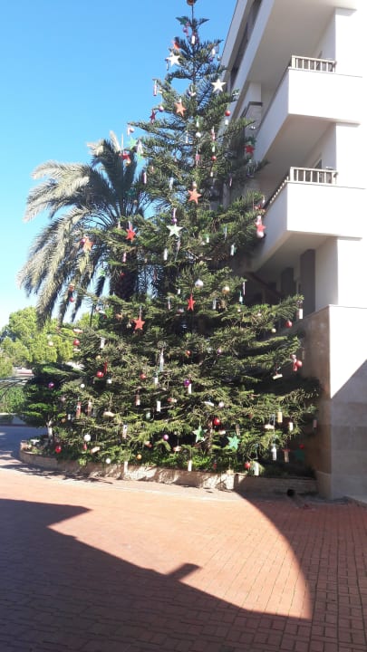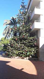 Der Weihnachtsbaum mit Päckchen an der Eingangstür zum HotelDer Weihnachtsbaum mit Päckchen an der Eingangstür zum Hotel