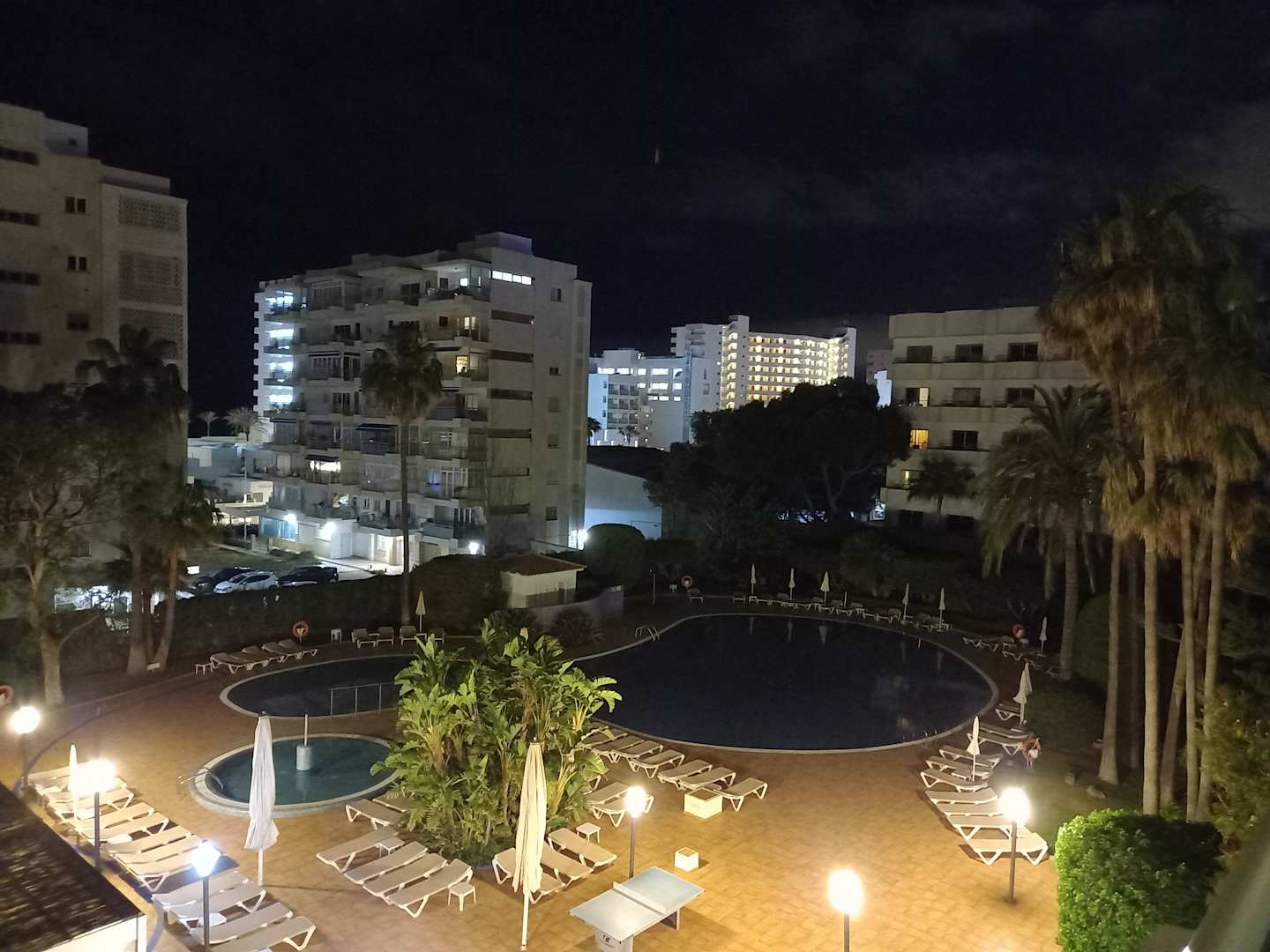 Poolanlage am Abend