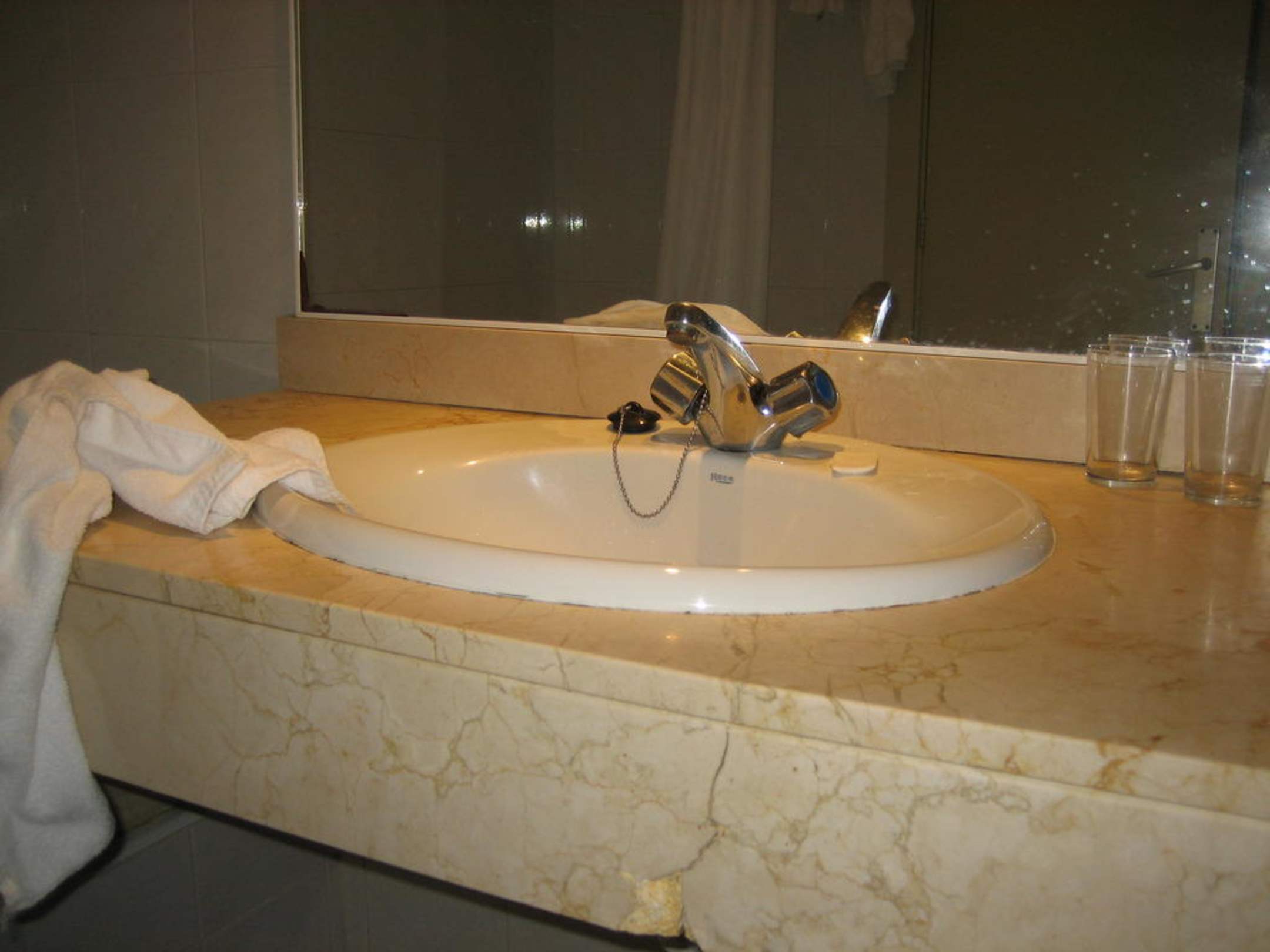 Waschtischeinen Riss hatte wohl jeder Waschtisch in diesem Hotel, und Sauberkeit sieht auch anders aus