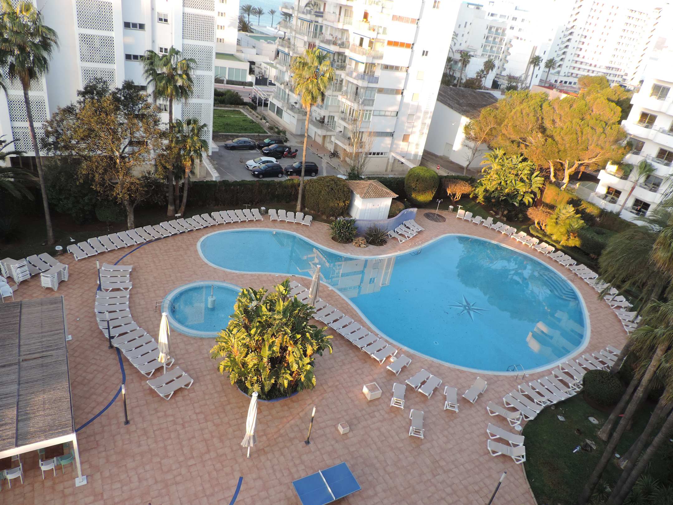 Blick vom Balkon auf den Pool