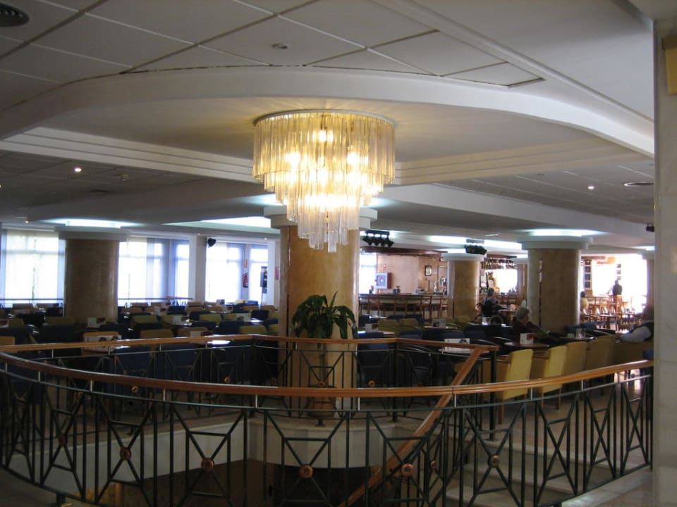 ein Blick Richtung Bar, sehr viele Stühle und Tischchen für die abendlichen Veranstaltungen, aber Achtung: Chlorgeruch, da kleines Schwimmbad direkt nebenan!