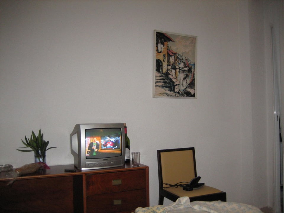 Sehr kleiner Fernseher! Lauter stellen führt zu unangenehm dumpfen Tönen. Was man allerdings immer gut verstehen kann: die Geräusche im Nebenzimmer und in der Bar zwei Etagen tiefer!