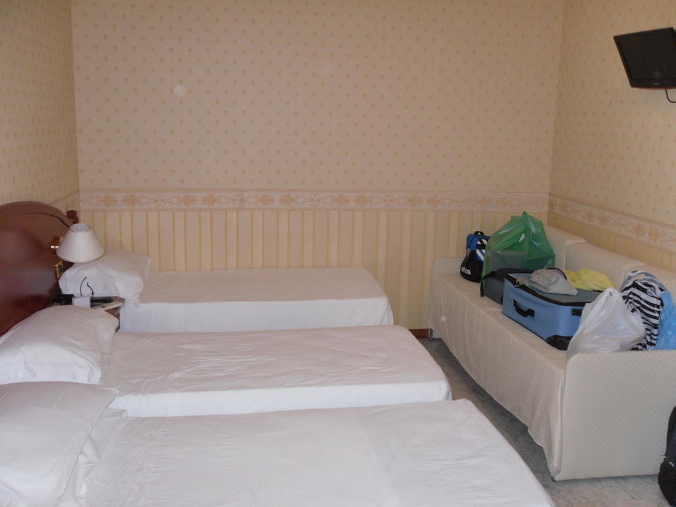 DreibettzimmerDieses Dreibettzimmer war mit Hofblick, im heißen Römischen Sommer Ideal und vor Straßenlärm auch gut geschützt