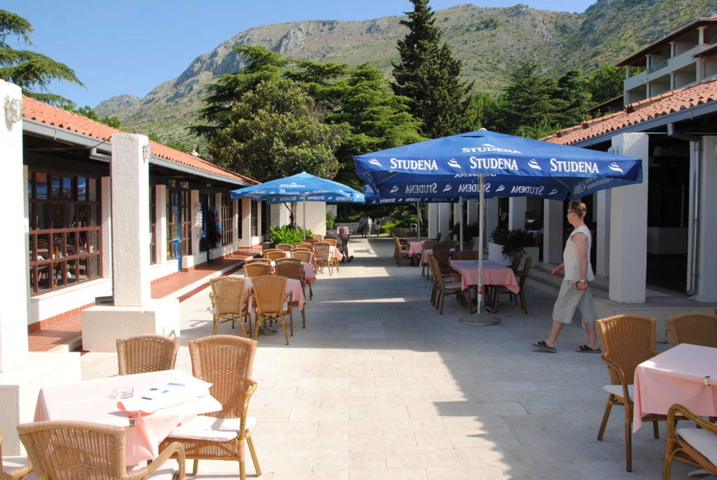 "Servicegang"Rechts befinden sich ein Minimarkt und ein Restaurant, links ein kleiner Andenkenladen, Friseur, Autovermietung und Miniclub.