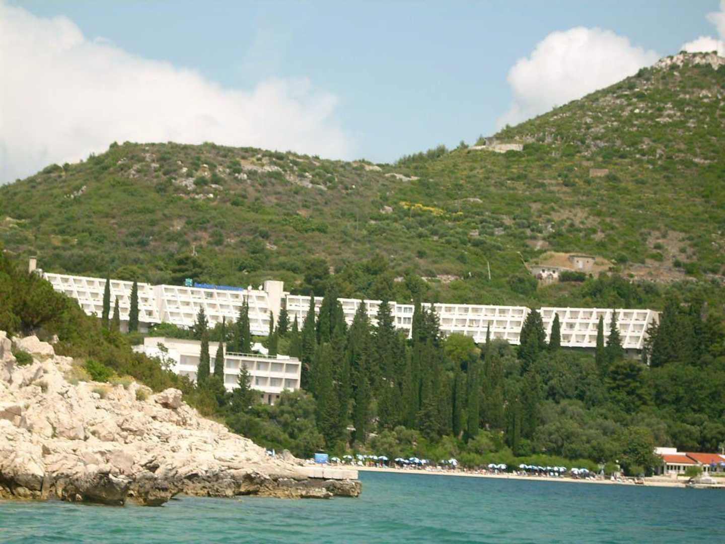 Buchtende Hotel OsmineVom Tretboot aus um die Landspitze des Leuchtturmhäusschens herum kommend zu Hotel sehend....