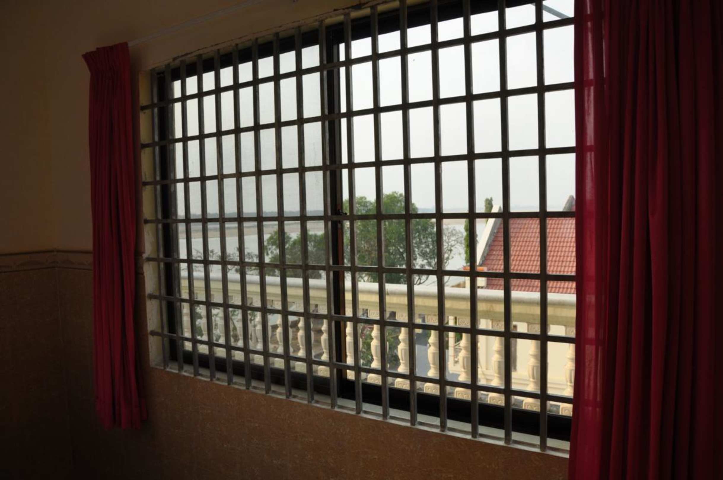 Seitlicher Blick aus den vergitterten Fenstern