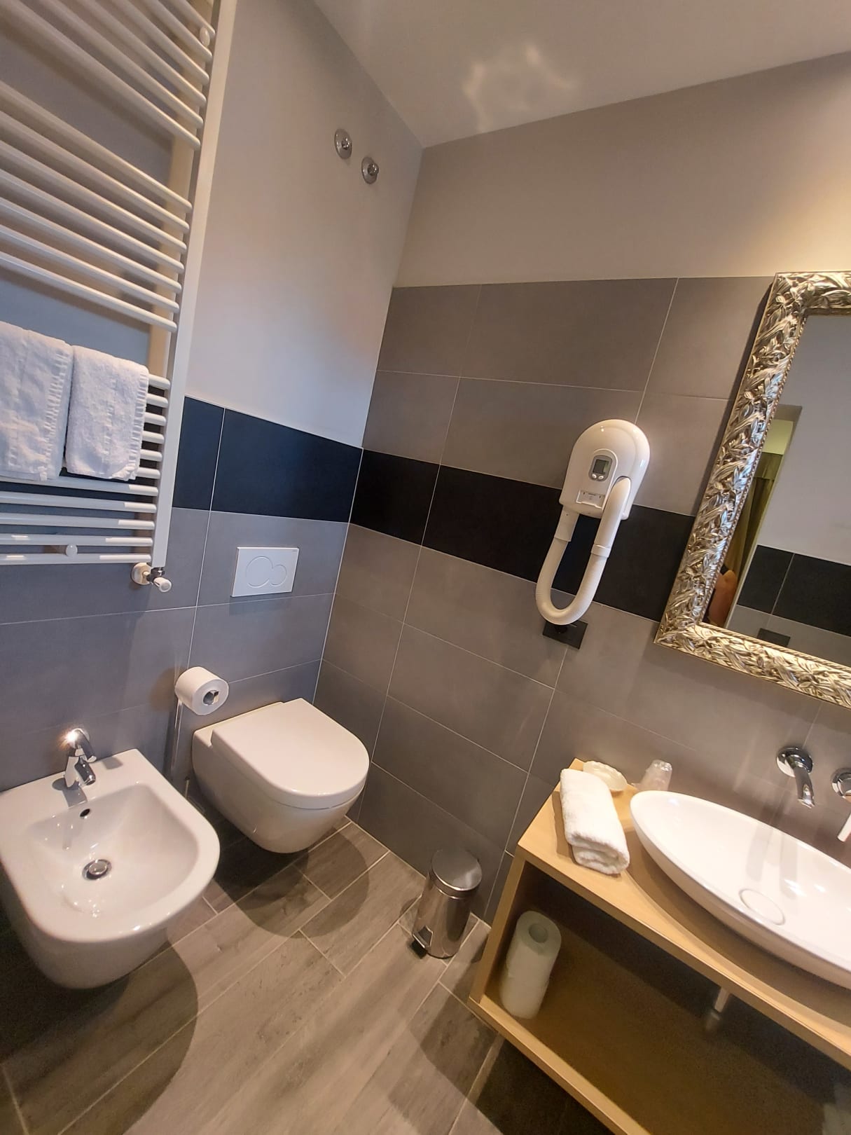 Neu renoviertes Badezimmer mit Toilette und Bidet