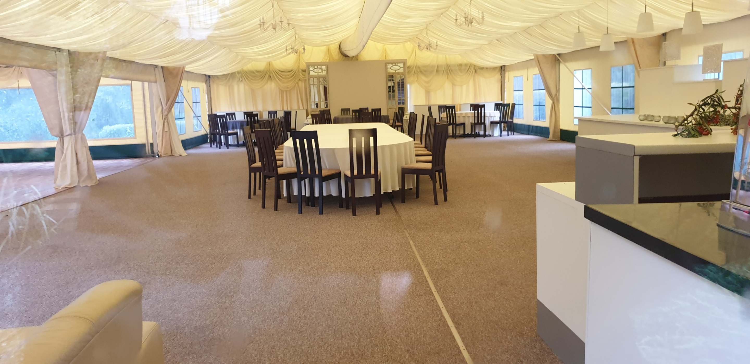 Für Feierlichkeiten gibt es ein großes festes, beheiztes Zelt am Haus