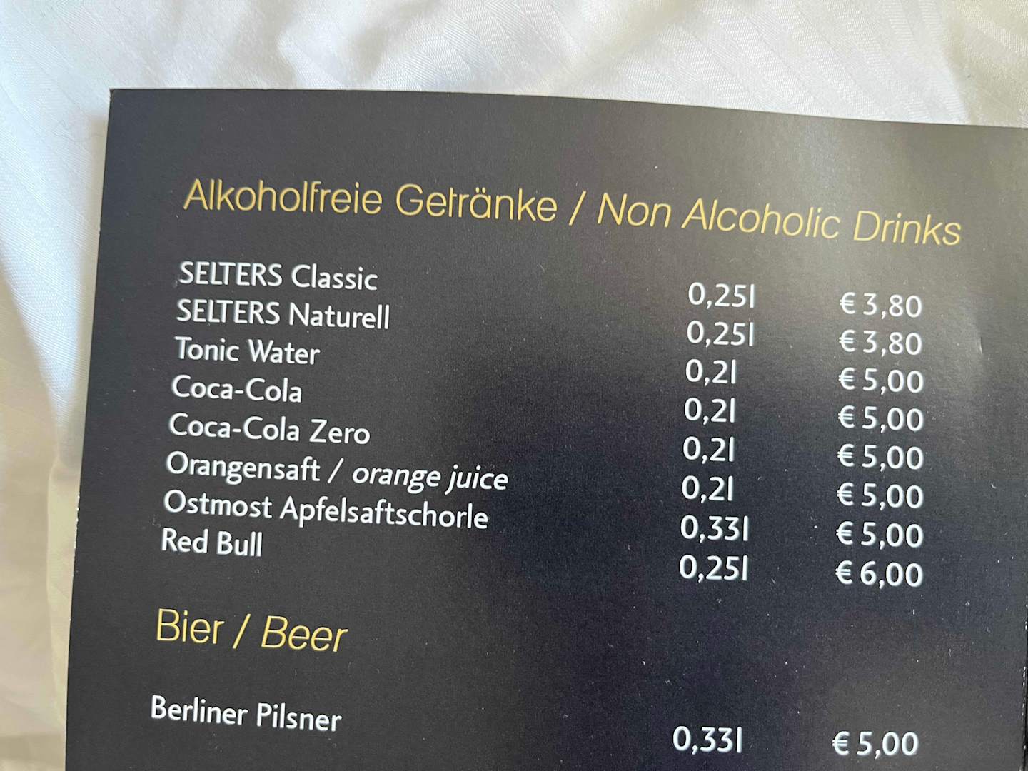 Minibar-Karte
