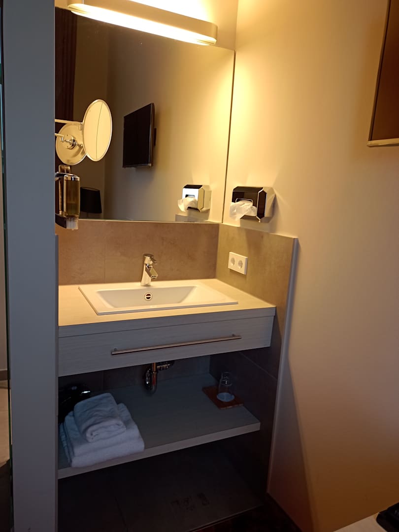 Zimmer 108 - Waschtisch, gut ausgestattet. Leistungsstarker Haarfön, Schminkspiegel.