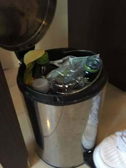 Voller mülleimer von vorgästen