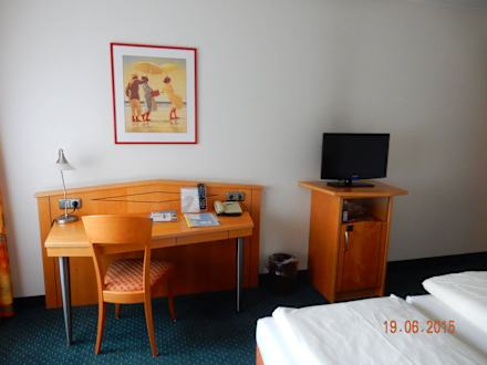 Schönes Schreibtisch und Fernseher Hotel Panorama Hamburg-Billstedt