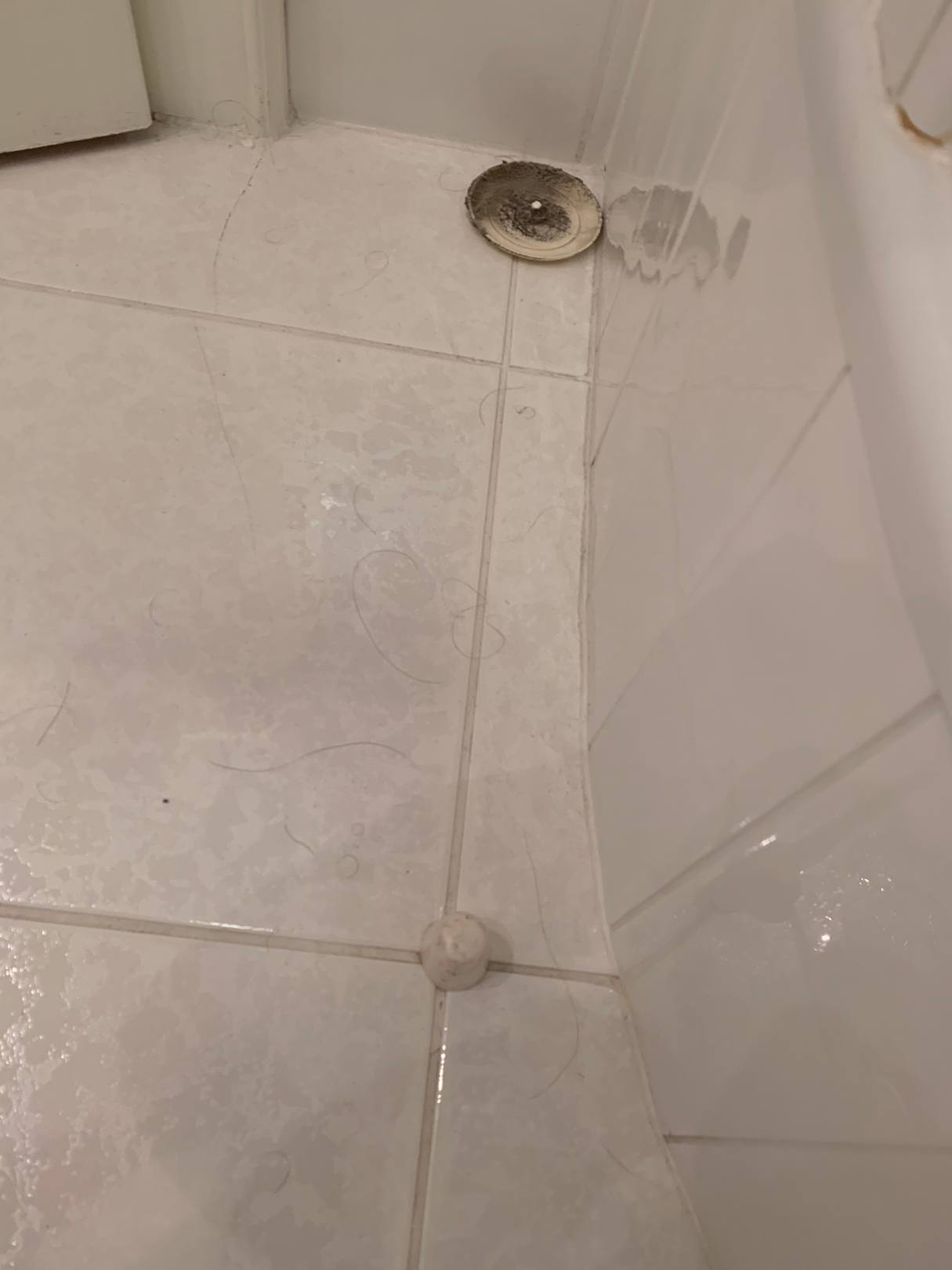 Haare im Badezimmer und abgefallene Lüftungsabdeckung