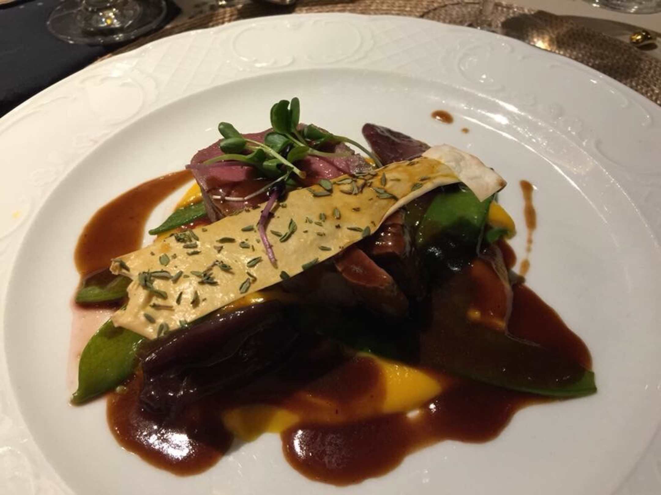 Filet vom Ochsen/Rotweinschalotten/Zuckerschote