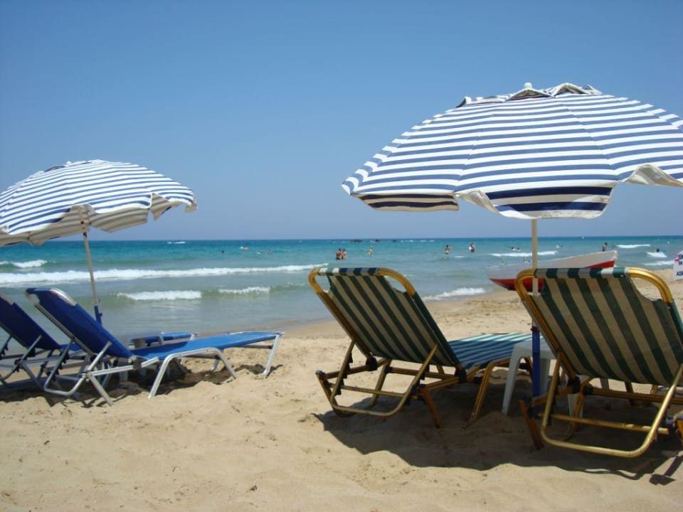 2 Liegen mit einem Tisch und Sonnenschirm kosten 5 Euro am Tag.