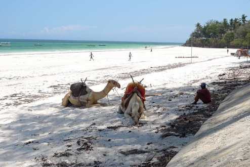 Hotelstrand mit müdem Kamel