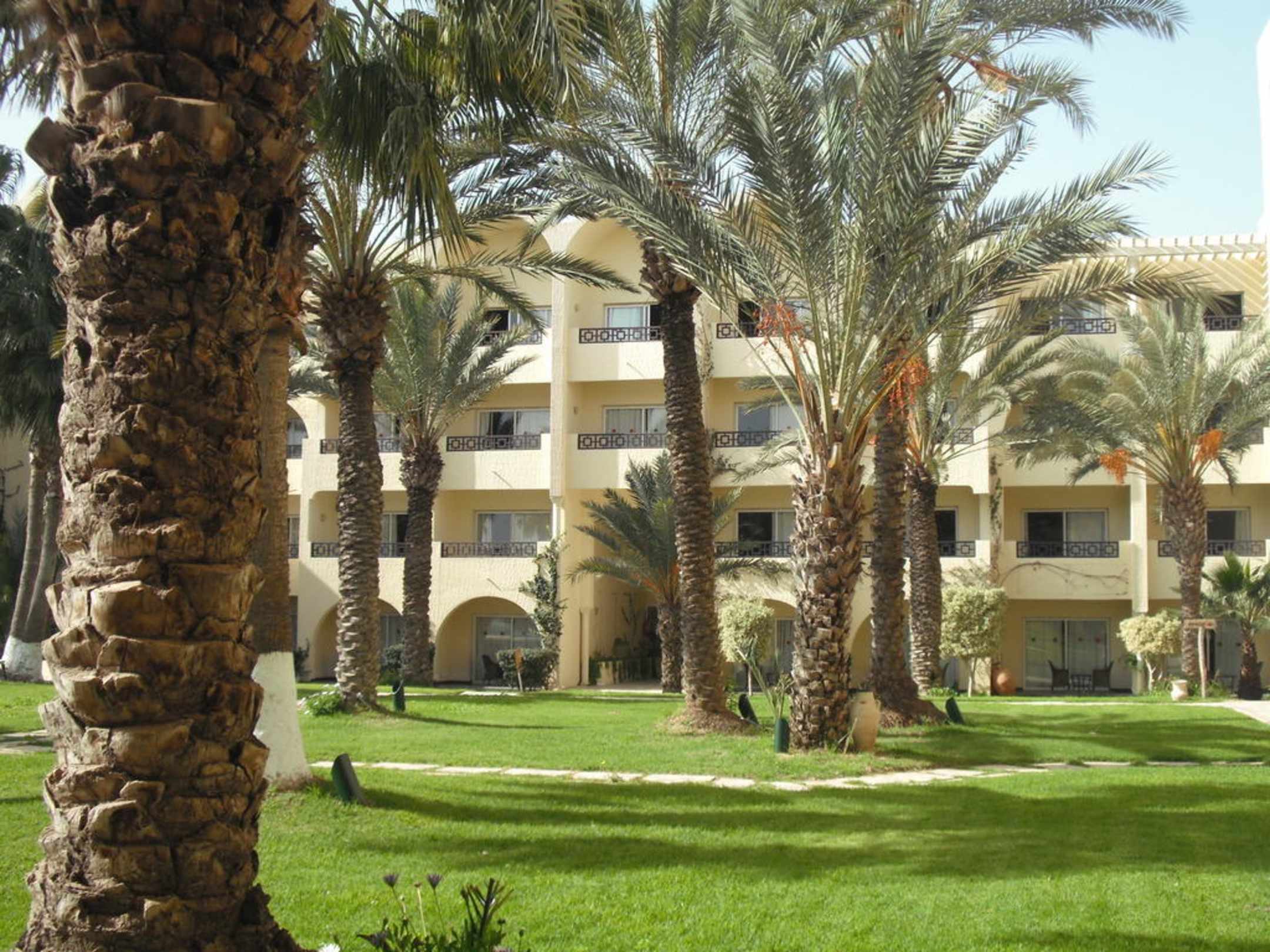 Garten mit Blick auf Hotelanlage