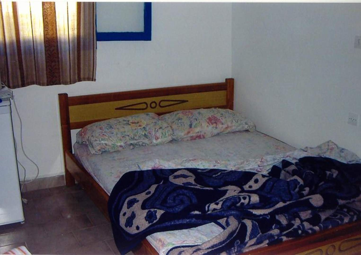 Ein Doppelbett, daß an die Wand gestellt ist, sodaß wenn eine Person, die an der Wand schläft, hinaus möchte, nicht normal aus dem Bett steigen kann, sondern bis zum Fußende rutschen muß, um das Bett zu verlassen. Dieses Bett stank penetrant nach Schweiß der vorangegangenen Gäste. Es war nicht frisch bezogen, die Schlafdecke war verfilzt und ecklig, die Bettwäsche war unsauber.