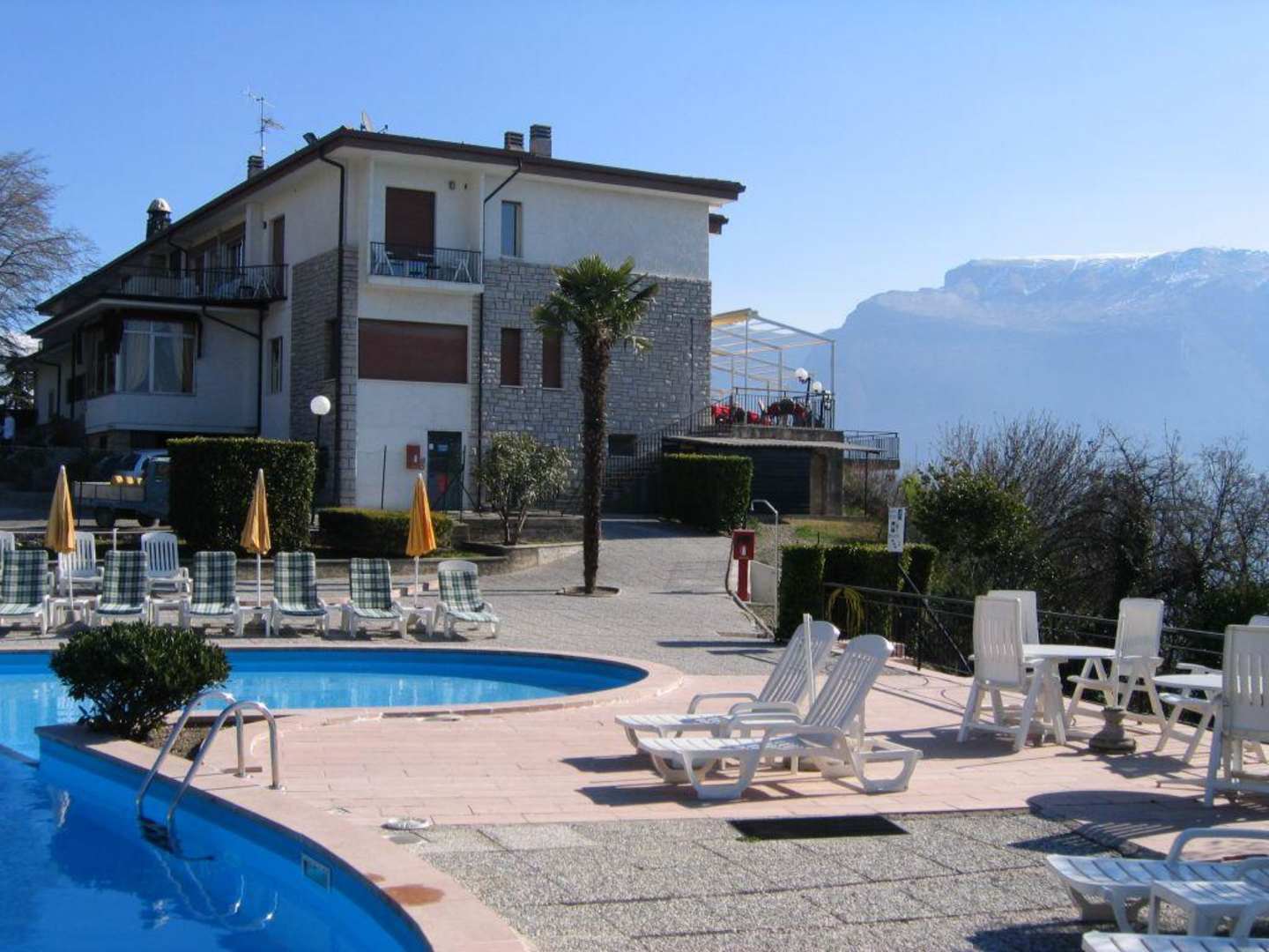 Seitenansicht vom Pool aus