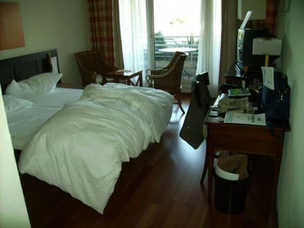 DoppelzimmerEin schönes gemütliches Doppelzimmer. Die Grösse ist absolut ausreichend und vor Allem ruhig. Auch bei geöffnetem Fenster kein Lärm von den Luganer Strassen, lediglich durchfahrende Züge von der im Ort unten vorbeiführenden Bahntrasse hört man.