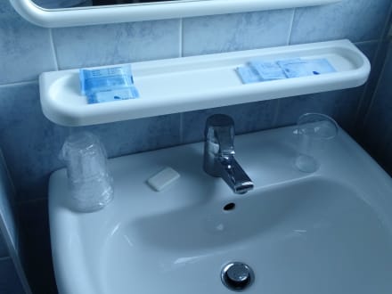 Waschbecken und Plastikbecher