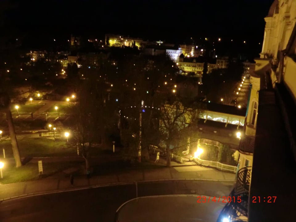 Der wunderschön beleuchtete Kurpark mit Fontäne