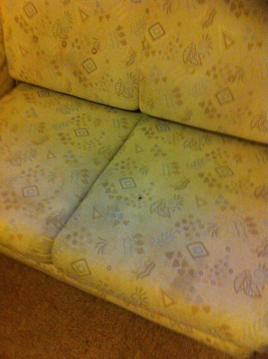 Abgenutztes Sofa mit Brandloch (in einem Nichtraucher Zimmer) in Zi 20 Hauptgebäude
