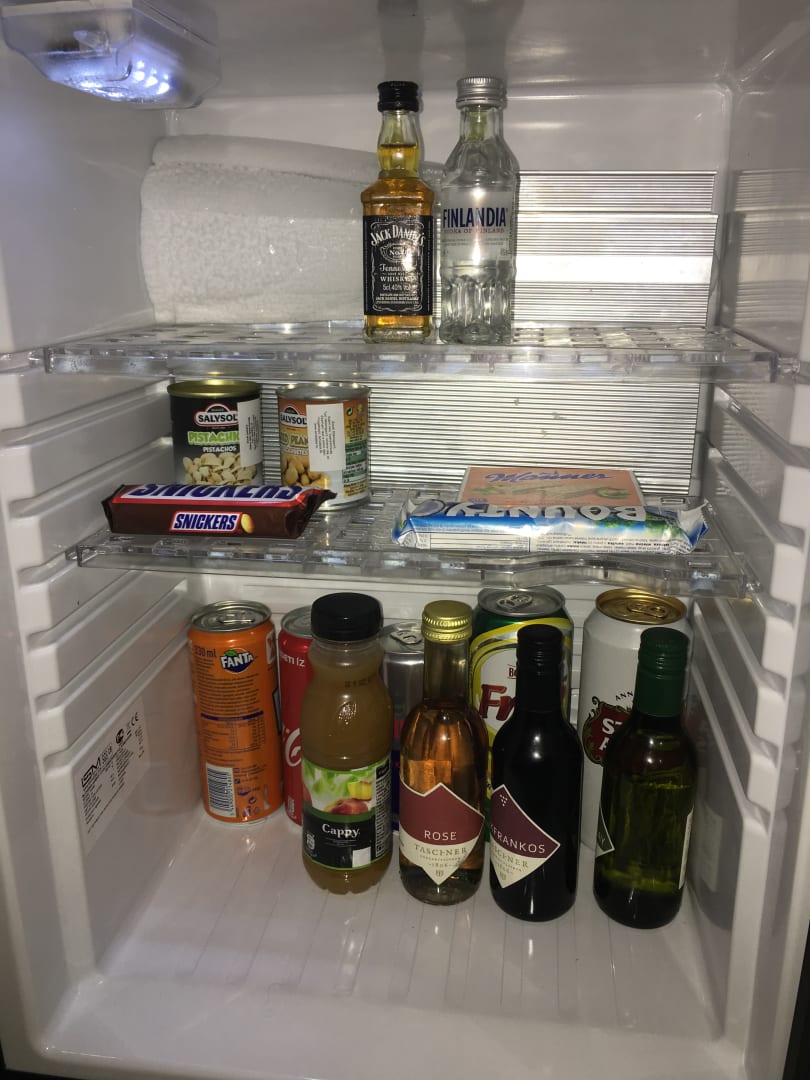 Blick in die Minibar im Zimmer
