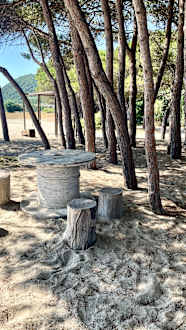 schattige Plätze neben der Beachbar. Sehr angenehm