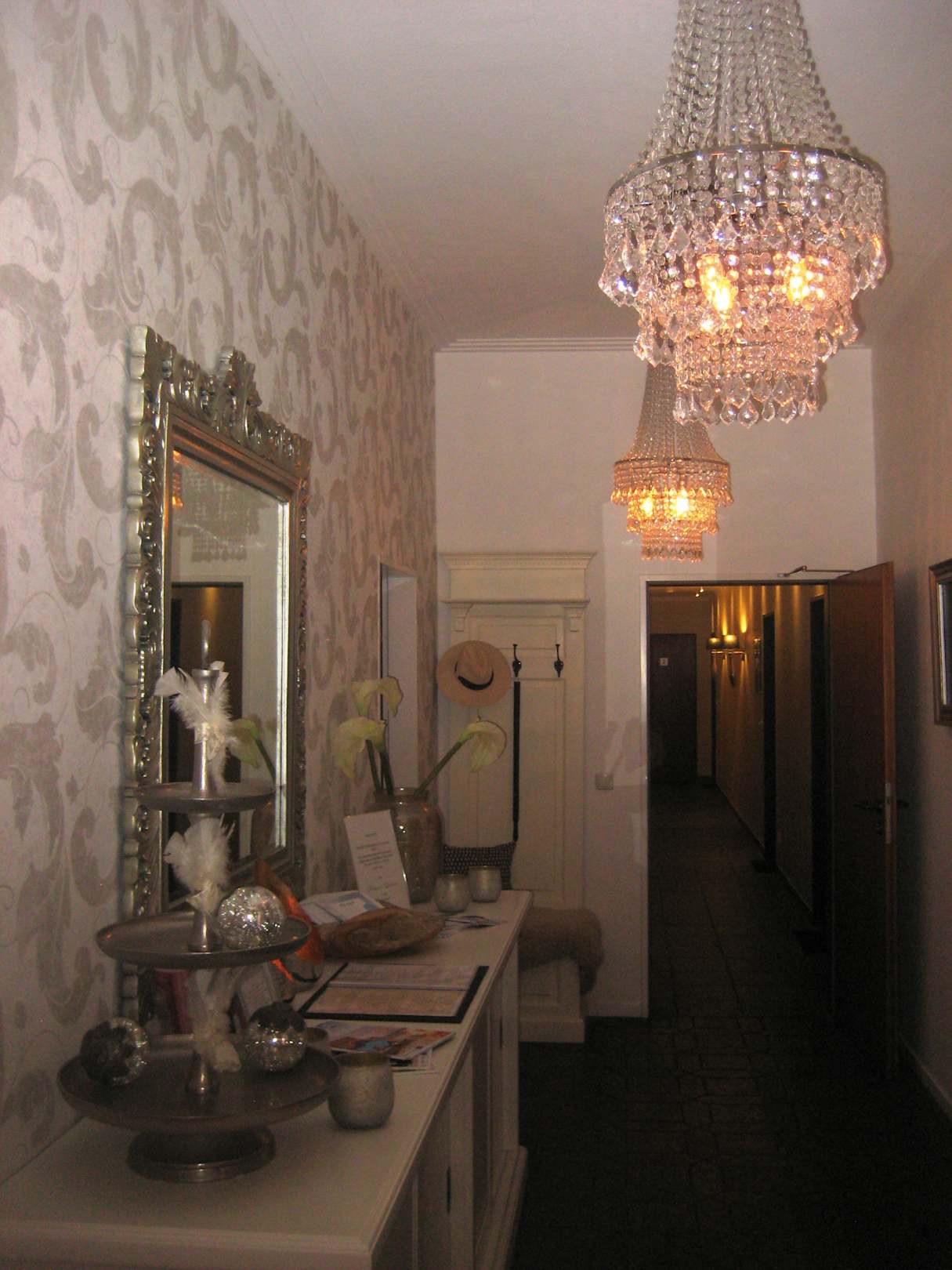 Von der Lobby in Richtung Treppenhaus und Hotelflur Parterre.