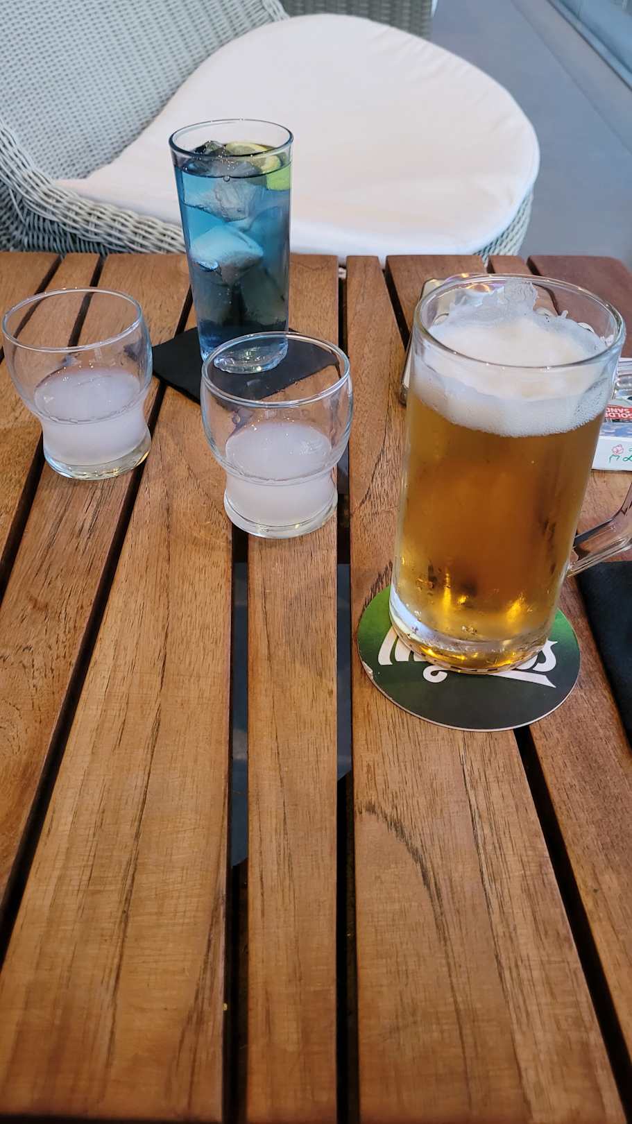 Leider müssen die Cocktails (Mainbar) bis auf 2 "hauseigene" hier extra bezahlt werden... Und das in einem allinklusive 4* Hotel - Das ist nicht allinklusiv! Bier (Mythos) und Ouzo (35N) einfach nur lecker!