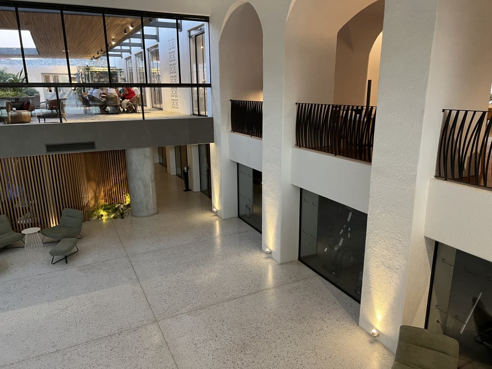 Blick in den unteren Bereich mit Fitnesscenter und daneben gelegenem Wellnessbereich