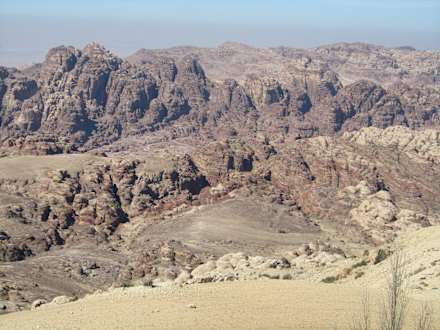 Widok na skały PetryNa najwyższym szczycie po lewej stronie znajduje się grób Arona.