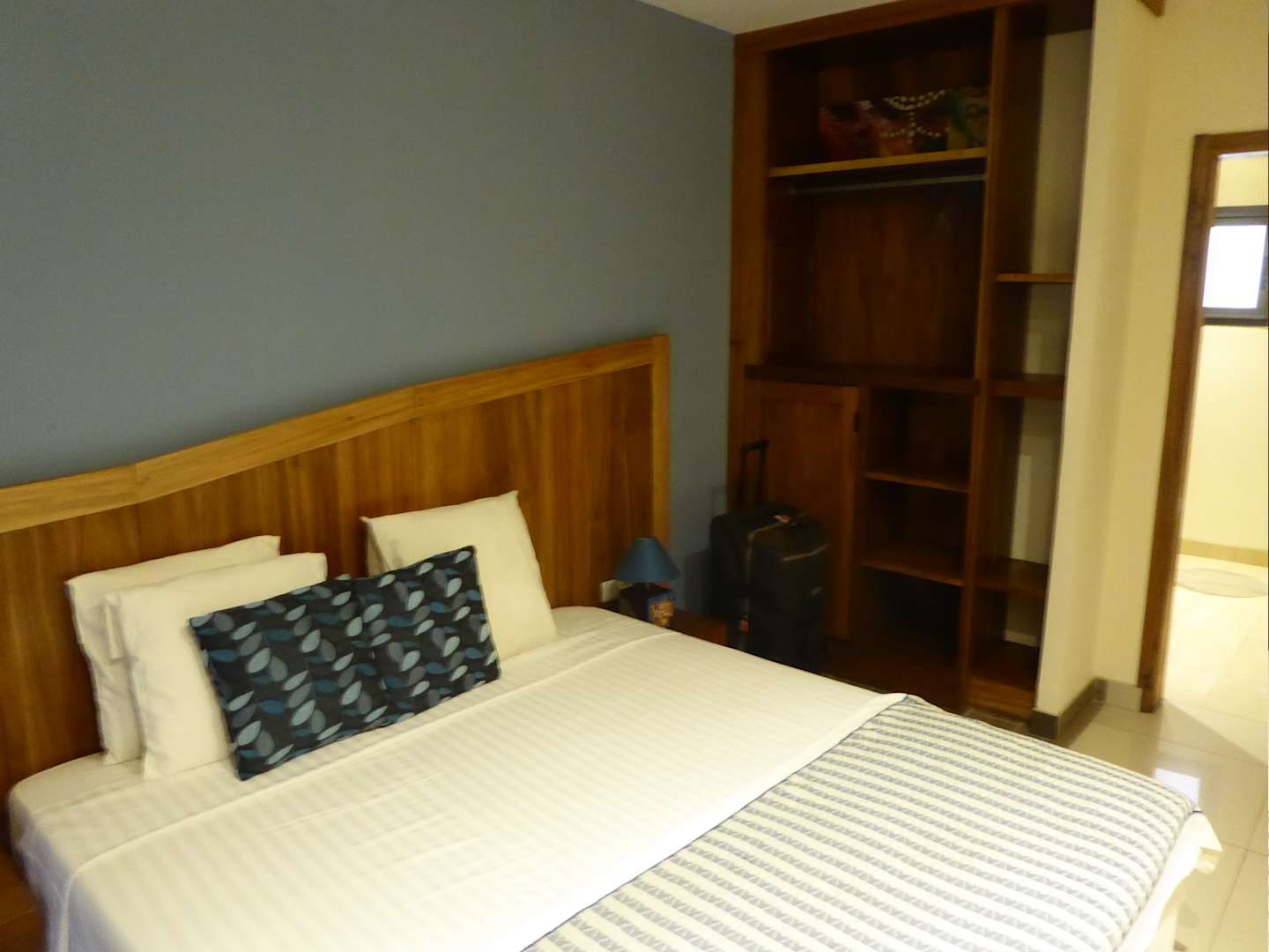 Bett mit Kleiderschrank, Tür zumBad