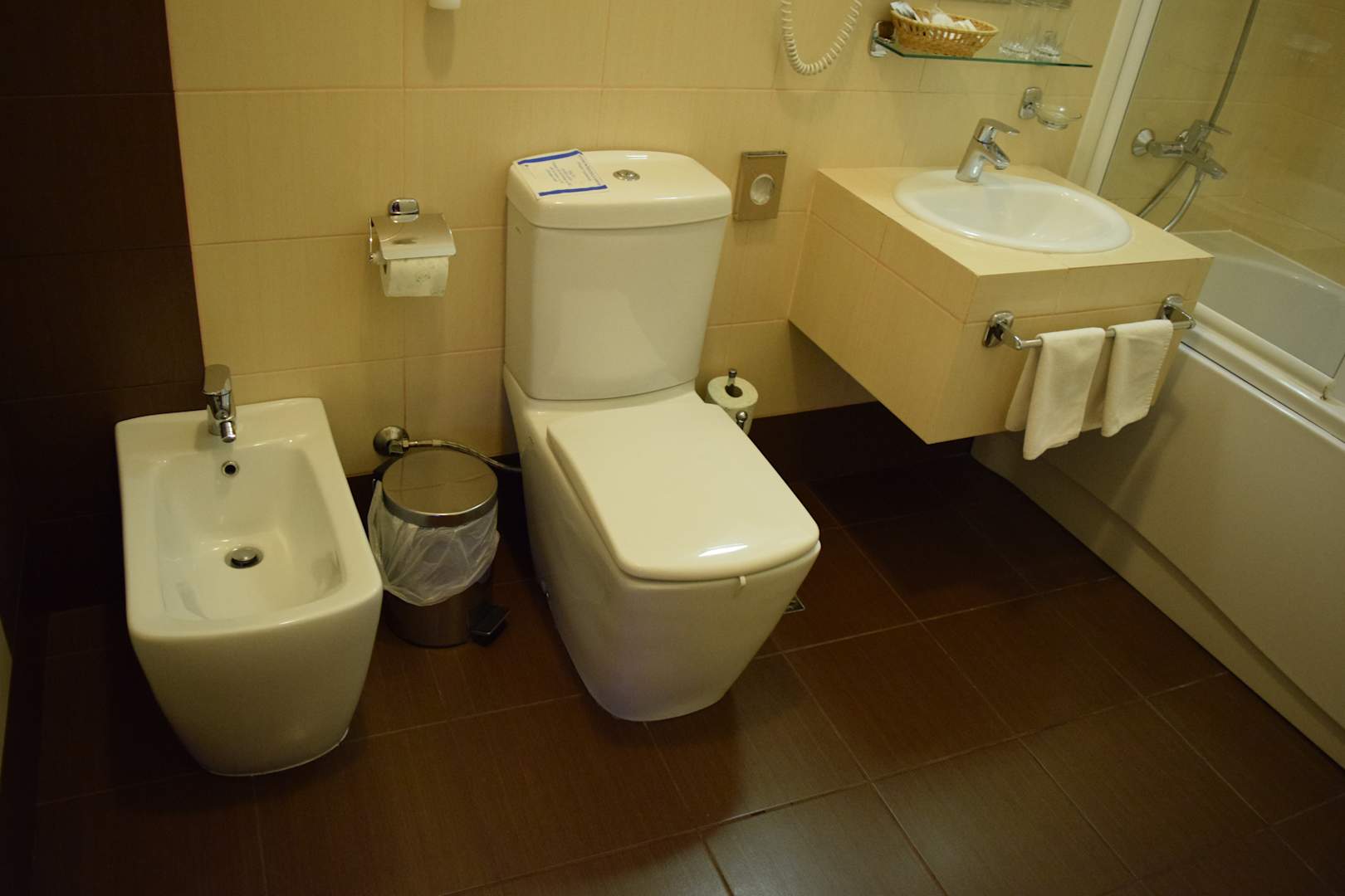 Badezimmer mit BD, WC, Waschtisch und Badewanne...