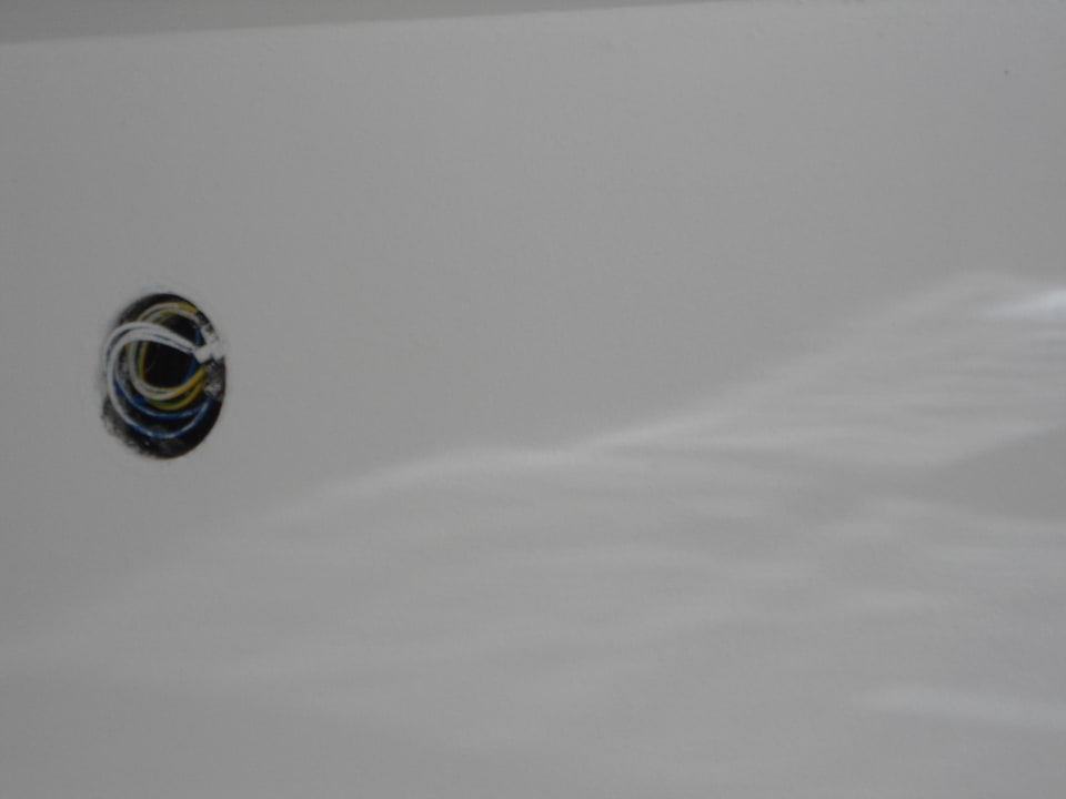 Im Bad (!) ein Loch mit offenliegenden Kabeln!