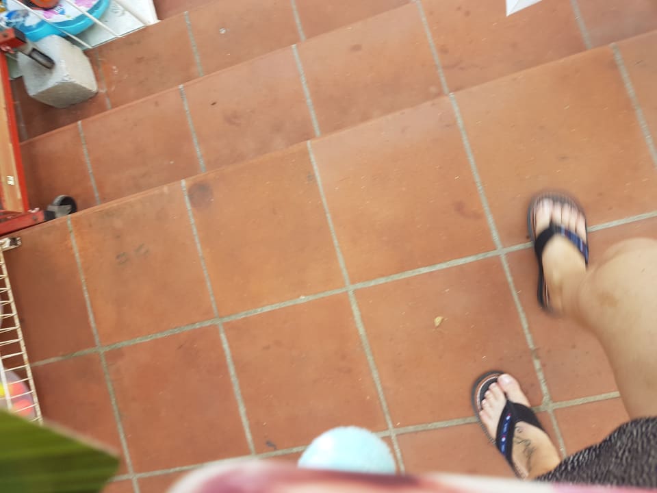 Weg zum Pool. Kaugummiflecken überall.